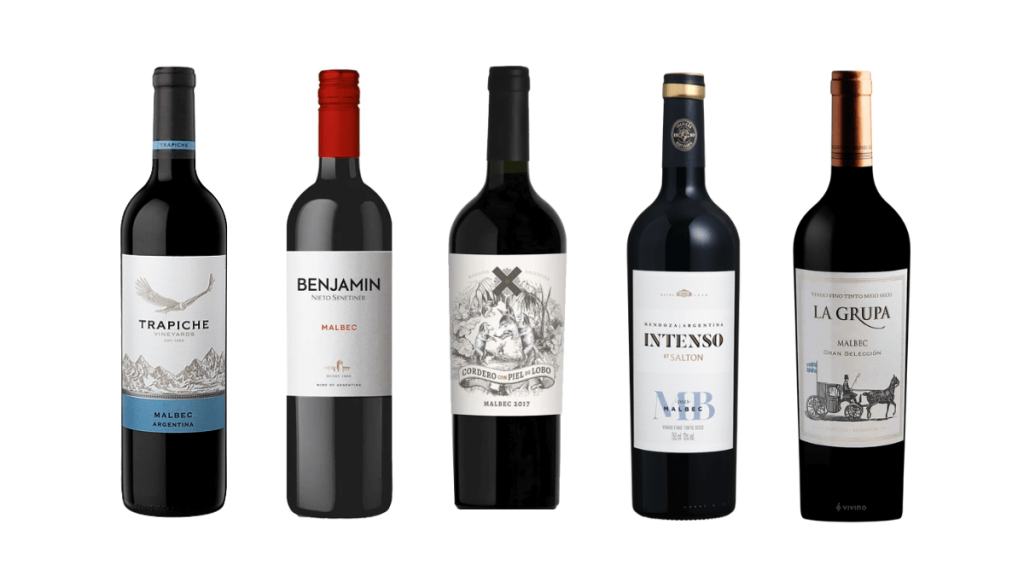 Seleção de 5 vinhos Malbecs argentinos baratos, por menos de R$ 50